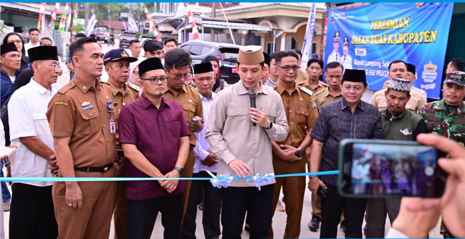 Bupati Lampung Selatan, Radityo Egi Pratama, meresmikan dua ruas jalan strategis, yakni ruas Kuripan, Senin (02/03/2026).