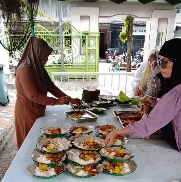 Makanan siap saji ini dikemas oleh para ibu-ibu sebelum pelaksanaan sholat jumat dengan pelayanan maksimal untun jemaah.