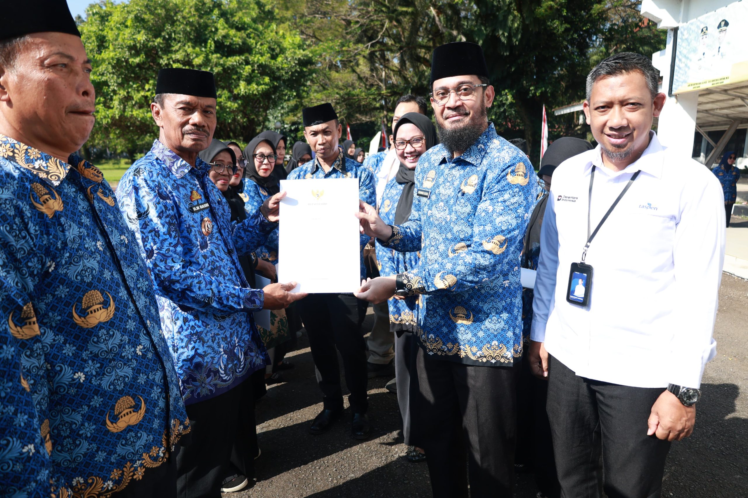 Tentang pemberhentian dan pemberian pensiun Pegawai Negeri Sipil Lingkup Pemerintah Kabupaten Barru TMT 1 Mei dan 1 Juni 2026, serta penyerahan simbolis tunjangan hari tua kepada 22 ASN.(Aiq)