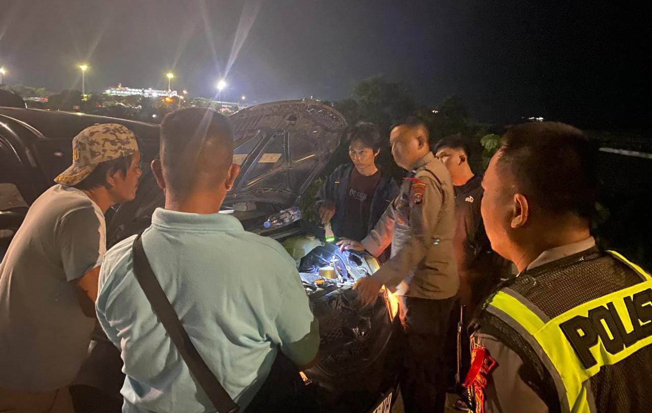 Seorang pemudik yang mengalami kendala kendaraan mogok di pintu keluar Pelabuhan Bakauheni, Lampung Selatan, mendapatkan bantuan cepat dari petugas kepolisian setelah melaporkan kejadian tersebut melalui layanan darurat 110, Minggu (15/03/2026) dini hari.