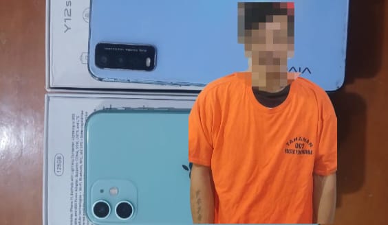 Dalam pengungkapan kasus ini, polisi berhasil mengamankan sejumlah barang bukti berupa dua unit handphone milik korban, yakni Vivo Y12s dan iPhone 11, serta kotak kemasan perangkat tersebut.